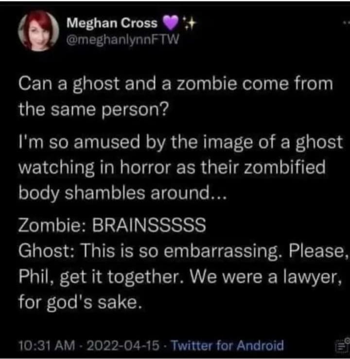 Lectured By An Entity As Your Ghost Watches In Horror At Your Zombie SelfLooking For Sustenance