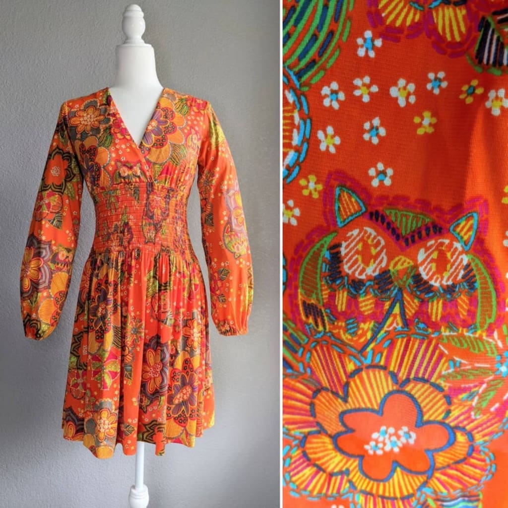 I remembered the owl dress I brought. It was the first dress I got with my own money from a trippy shop in the nearest town Leicester. The shop was full of crystals and clogs, fringe and fur vests , dayglo paintings and was scarily inviting. I think this purchase was before the drawing of the dead owl. It was a mini dress in Orange with a weird print. , at first I did not notice the owls they were hiding in the flowers. It was a happy dress, I was trying to embrace the sunny hippy side of the 70s, not my weird awkward side, plus I had discovered boys and was trying to dress like the fashion magazines of the day , BIBA , OZZY CLARK. I would wear it to the youth club, it was a bit short and my mum would not let me wear makeup. But I had just started wearing a bra and felt very grown up.I wanted the boys to notice me, they were more interested in the older girls.