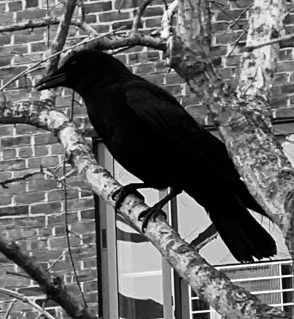 She looked again and the bearded man was gone , lost in the trees. Perhaps taken by the crows who seemed to be getting agitated.