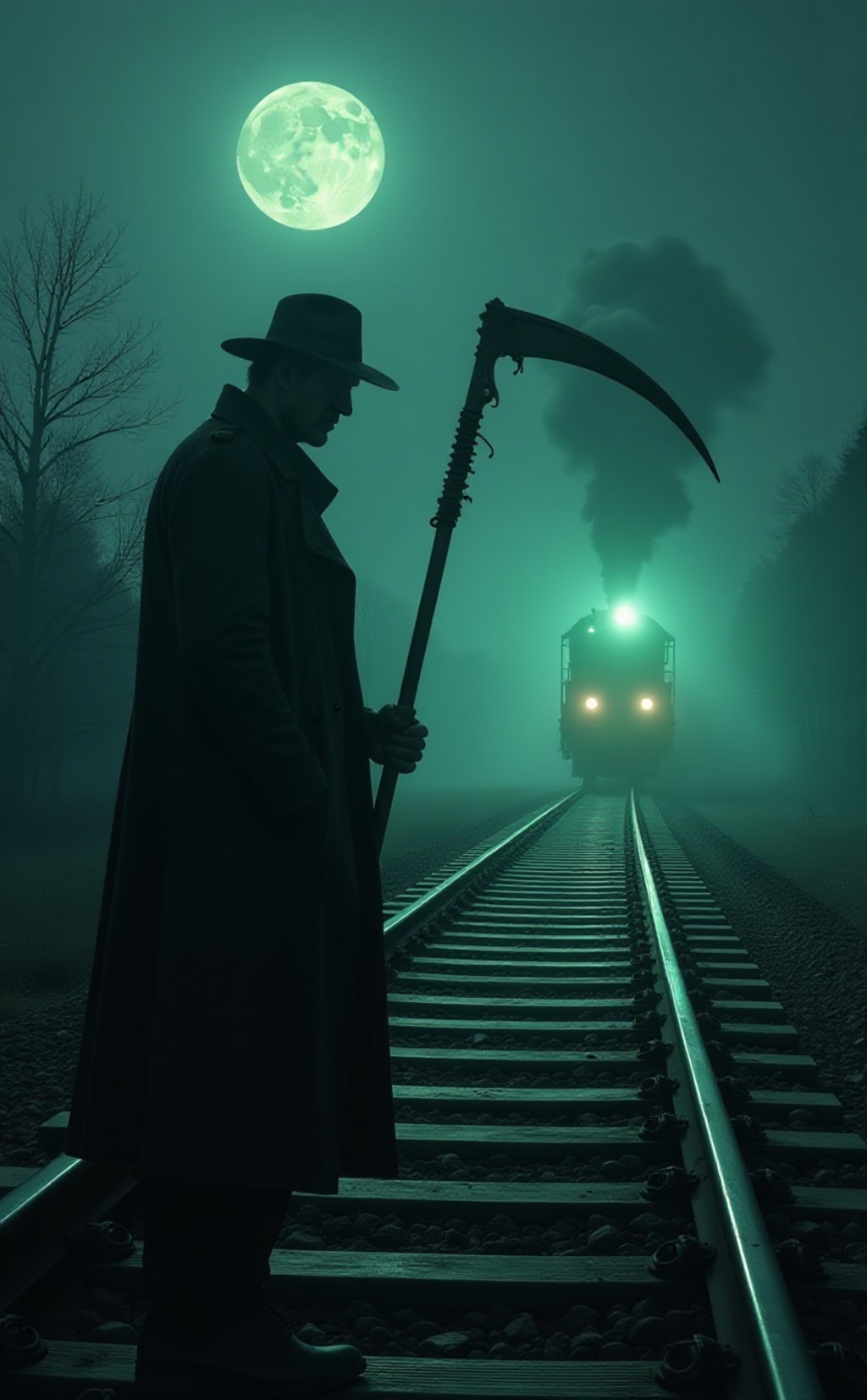 They say he only comes when the whistle blows where no train should be. The tracks might be rusted, the station in ruins, but still — the sound comes, deep and mournful, like the wail of something buried alive. That’s when the Rail Reaper arrives.