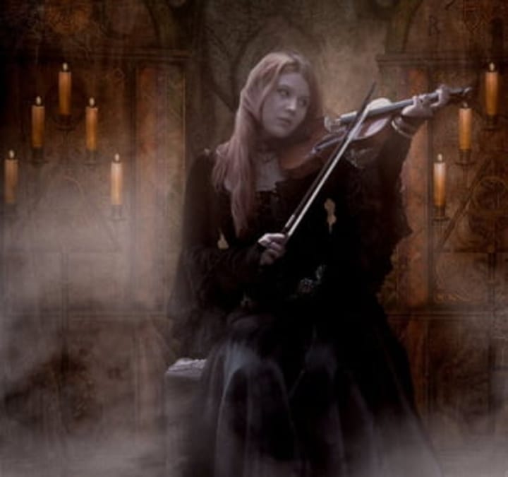 The woman's face turned dark. "I played a song I shouldn't have," she said. "A song that summoned a demon. The demon took my life, but I was cursed to play this violin for eternity."