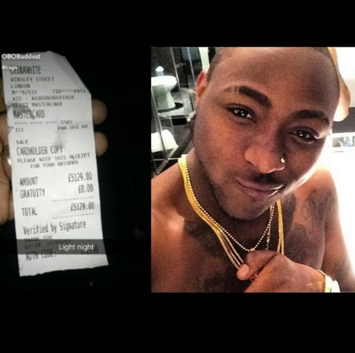 Davido is known for spending lavish amounts of money at clubs and outings. However, when he shared his receipt of over 5,000 British Pounds that he spent on a night out, fans had to raise their brows calling his spending "extravagant". Extravagant is putting it mildly.