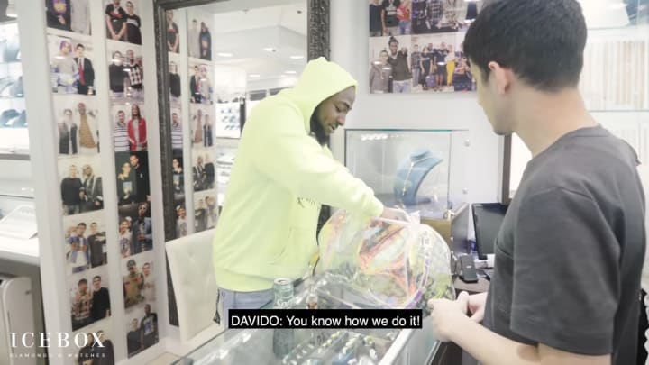In 2019, Davido appeared on IceBox, an Atlanta based jewelry store's Youtube video where he brought in a Louis Vuitton bag full of cash. By the time Davido walked out of IceBox, he had spent $150,000 all during that one trip. People's comments under the video were filled with surprise, envy, and shock. Somebody commented saying: "I get paid $500 a month , I can't believe he just paid $150.000 for jewelry. That's like my salary for 25 years, 25 years bro 😭😭"