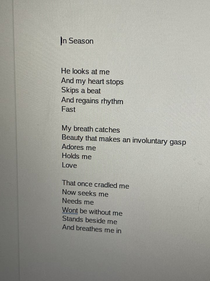 A poem that she wrote from within isolation, the isolation was relative because this one had no family, and no friends left, but she was still fairly sane and had maintained a decent sense of humanity. She wrote well and often, long rambling ponderings on the good and evil of humanity, assertions of worth, rantings and sermons on the survival, and ethics of common dignity.