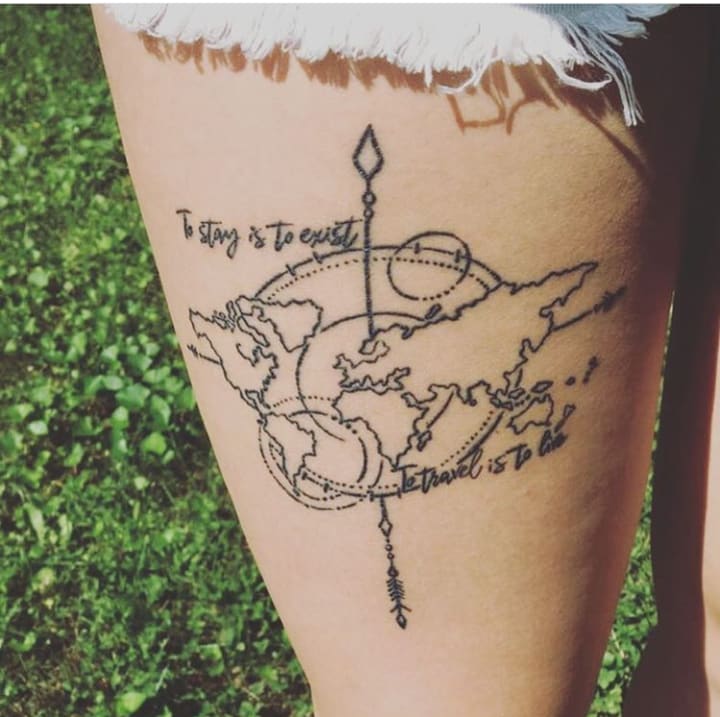 "To stay is to exist. To travel is to live." (Tattoo done by Main Street Tattoos in Clintonville, WI)