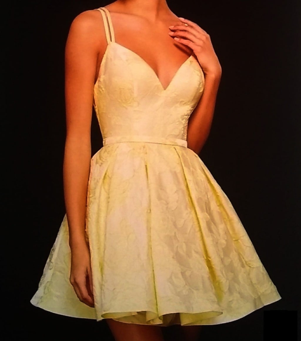 The yellow dress against her golden tan skin is like the white clouds against a blue sky: a subtle natural complement that you do not know you are seeing until you stare.