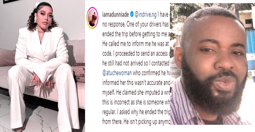 After DMing Indrive and not getting any response from them, Adunni Ade took to her social media to post a picture of the driver and a note that reads: