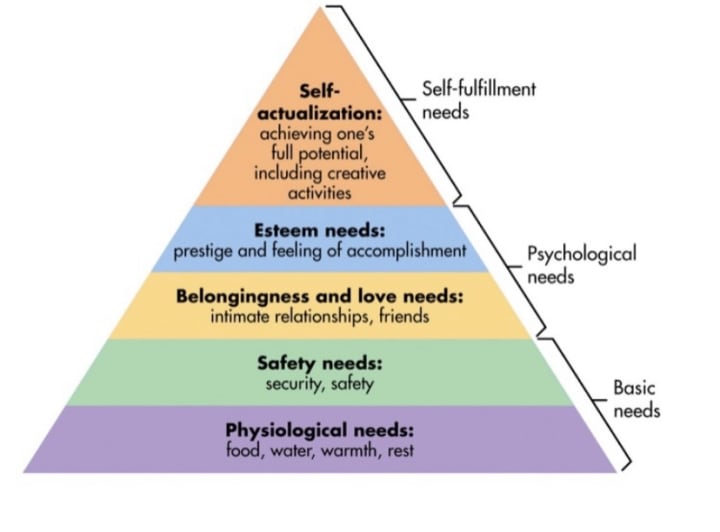 The needs listed at the bottom must be met first before moving up the pyramid. In this context it can be acknowledged that there are many fundamental needs that must be met before one can move up the pyramid and fulfill their needs of love and belonging.