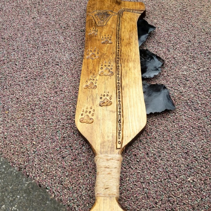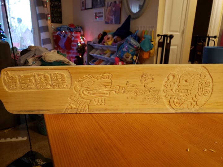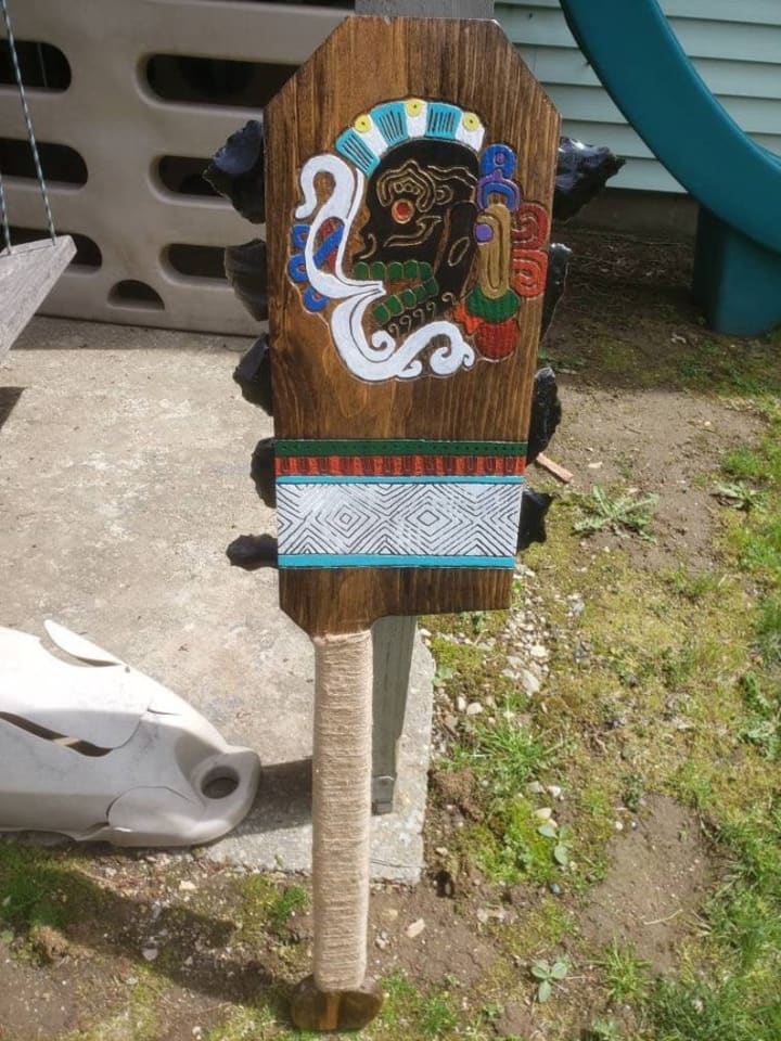 I was gonna make one of these out of cardboard and hang it on my wall as a symbol of my resilience of the outside forces of life. I planned on making cardboard versions of Mesoamerican weapons to help improve my mental health. This turned out to be the start of something great.