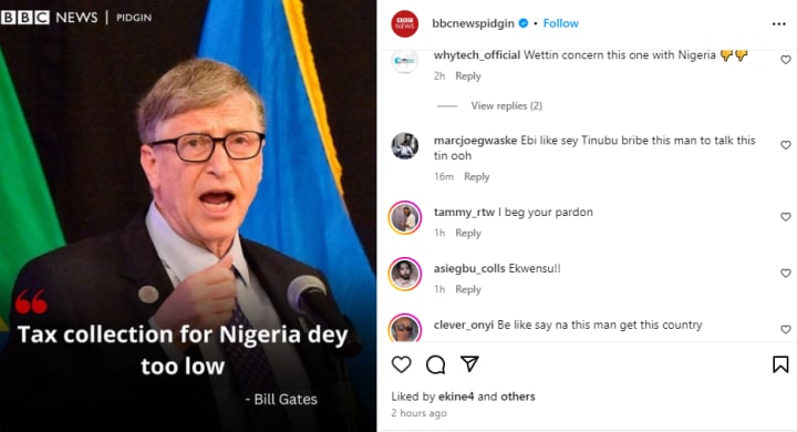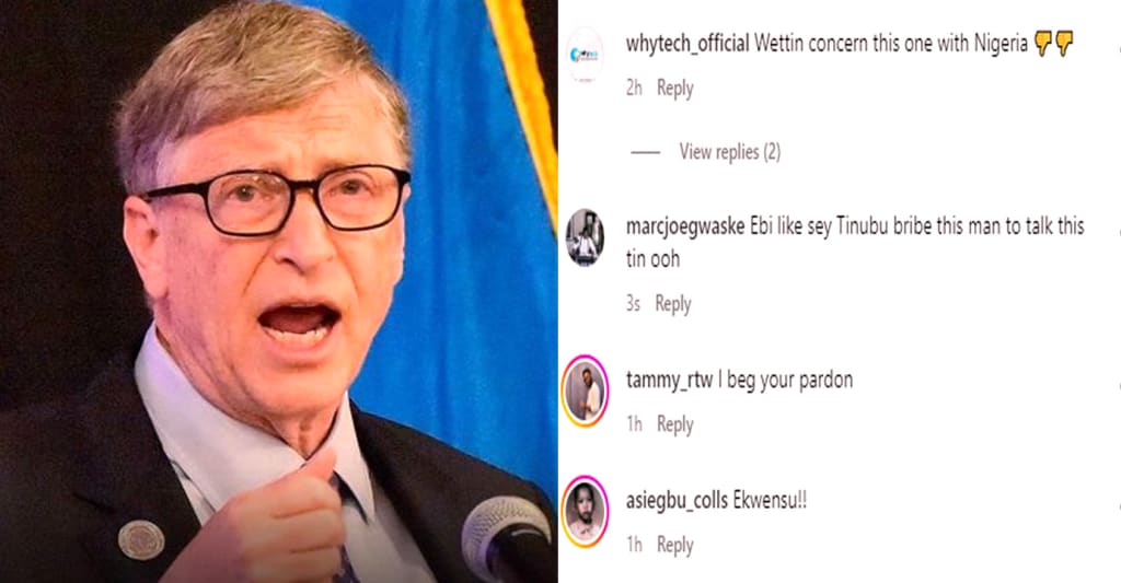 For example, when BBC Pidgin posted the quote, people in the comments were quick to call Bill all sorts of names from "ekwensu" to saying that he's been bribed.