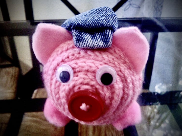 First my friend asked me to make a pig for her son’s birthday. I made the animal as requested, but something was not right. The pig was too pink and… honestly, too plain to be a birthday present. I had a pair of old jeans ready to be thrown away. I looked at them, and that’s when it hit me! I reached for my scissors — several cuts, glue gun to get the pieces together — and there is was, a denim cap for the cute pink pig! The cap made the animal look unique and special, and I felt satisfied with my creation.