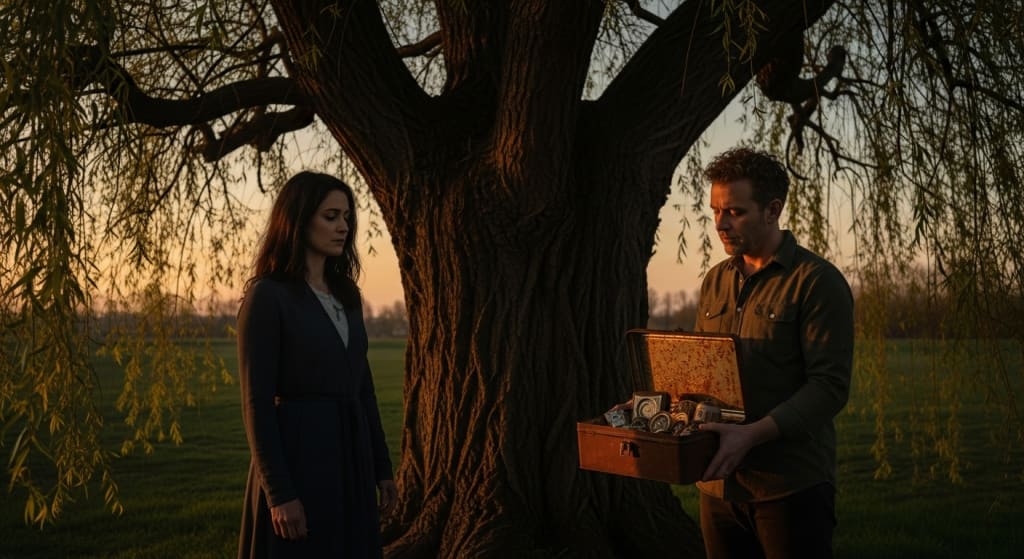 They stood side by side under the willow, shadows long and tangled with the past. As they walked away, neither looked back—but both carried the weight of what was buried and what had finally been unearthed.