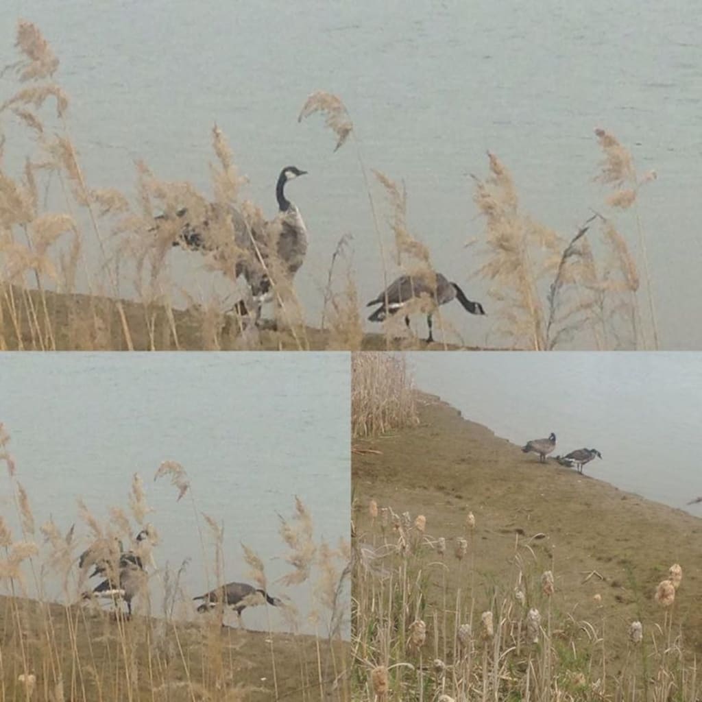 As I crept slowly along the riverbank, I noticed two geese that seemed to be involved in a conversation. Awed by their posture, I decided to take photos of them with my phone. In less than sixty seconds, I took three pictures as one of them flapped its wings. Satisfied with my accomplishment, I continued my quiet walk.