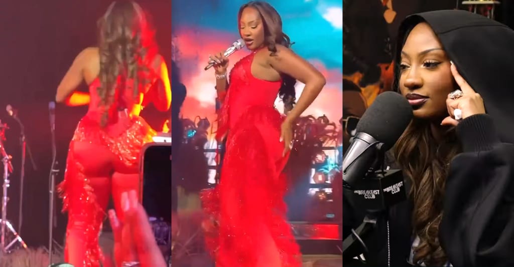 Nigerian singer Tems went from being known for 'covering up' and not showing anything to more tight-fitting clothes and bold fashion choices, and the switch in wardrobe has brought with it a lot of thoughts and opinions. In fact, right now, a video of Tems dancing on stage in a tight-fitting outfit is going viral on social media. Here's that video: