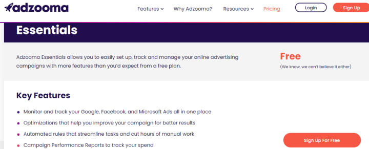 It is a great way to boost the success of all your online ads, and best of all Almost all of the features are completely free in what they call Essentials, and you only have to pay if you want to upgrade to Plus.