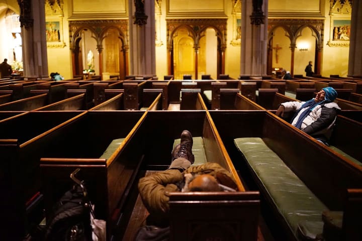 I was sleeping inside a church in town that was left unlocked at night. I’m not a church guy, but this was the only place with consistent heat that was clean, and where I would not get bothered. I would usually arrive around two AM, and I would lay down in a pew and fall asleep. It was always the left side, fifth from the back. I have no idea why, I had to bring my weird Gemini moon humor into it. I would wake up either to this dude that always cleaned up who didn’t really care I was there, or to church starting because I forgot it was Sunday. Yeah... that happened a couple times.
