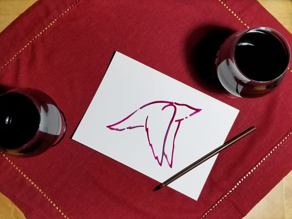 With a sneaky little wink at him, she unzipped her backpack and pulled out a small sketchbook… and a brush? What…? He burst out laughing when she dipped the brush in the wine and started painting with it.