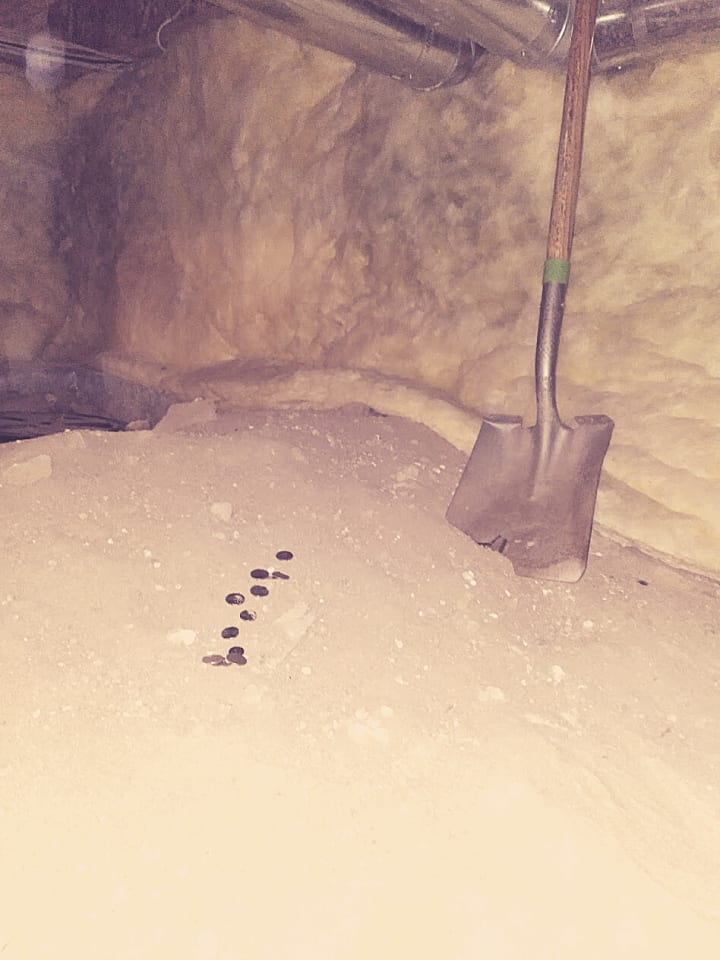 There was a peculiar man-made mound of dirt. With only three feet of clearing from the dusty ground to the crawl space ceiling, I hunched my back like an old lady.
