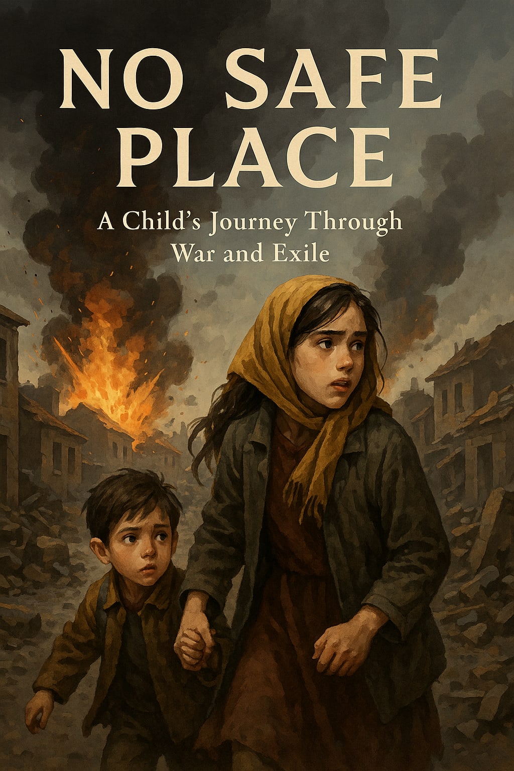 She scrambled to her feet. The air was thick with dust. Smoke curled around the doorway like fingers. Lina bolted, barefoot, through the rubble-strewn hallway, choking on fear. In the bedroom, her six-year-old brother Sami sat huddled against the wall, eyes wide, hands over his ears.