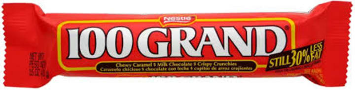 100 Grand: This chocolate bar featured a unique combination of caramel, nougat, and peanuts, all covered in milk chocolate. It offered a variety of textures and tastes in every bite. Discontinued in 2016.