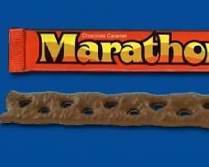 Marathon Bars: This classic candy bar featured a chewy nougat center covered in milk chocolate, peanuts, and a thin layer of caramel. It was known for its delicious combination of textures and flavors. Discontinued in 2010.