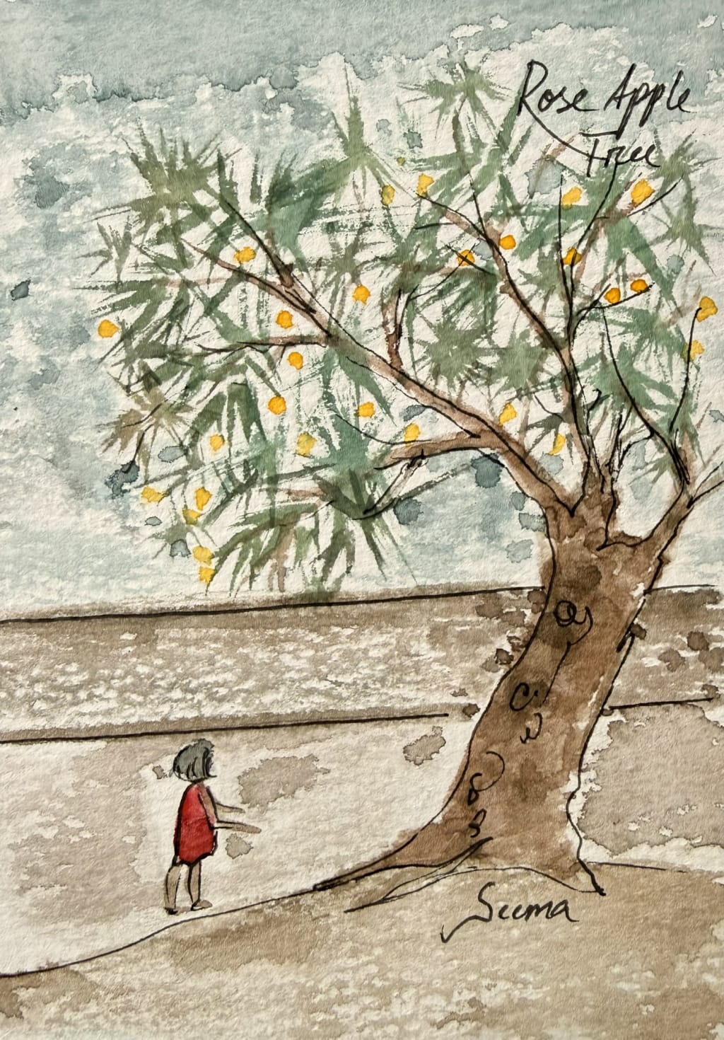 I hope, you liked the art above, of me as a kid, planning to climb the tree.
