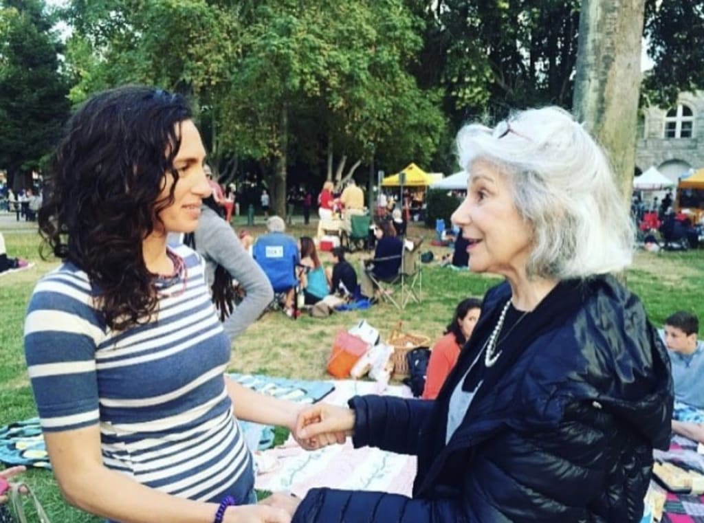 Towards the end I visited her in her California king bed, she didn’t speak much now. I gently rubbed her back where she had some pain. She said” thank you for always making me feel good.” She appreciated all the little things so much. I cried as I sat with her and she asked “ why are you crying?” I said “ because I just want you to get better now”. And she said as she gently smiled “ it’s ok, it’s really ok”. No anger or complaints. Just pure acceptance of the fact that this was it. Even though she had so much to offer everyone around her, even though she loved life more than most people do and appreciated the good and the bad times, even though she had a huge family she was leaving behind and a whole tribe of friends, and so much vibrant energy left in her body...she said it’s ok with complete acceptance and surrender. Not giving up or defeat. But pure understanding and acceptance and grace. The very last time I saw Rosemary was the day before she passed at home with her daughters by her side. I sat with her again. She couldn’t talk or so it seemed. The family was all there having dinner and taking shifts tending to her needs.Someone talked her into getting up out of bed and joining in the dinner. She got a burst of energy and grabbed her walker and rolled right out. She was in between worlds, seemed to see things we couldn’t see, but made sure to have one last dinner with the family. She held my hand and smiled the entire time. As I was leaving she managed to get some words out. She looked me in the eyes with sparkling light shining from her heart, and said “ are you coming back?” I said “ do you want me to?” She nodded yes. But I knew I wouldn’t make it back that day. I didn’t get to see her again. I hold a beautiful vision of her graceful acceptance and her gentle smile in my mind. That’s how she left the world. She left it a better place. She left the people in her life better humans. Never once did this woman complain. Every moment of life was like a gift to her. A gem. Nothing was taken for granted. She taught me many things. I have more self respect because of her. When I’m not doing the right thing, to this day I hear her voice tell me a better way. Or to have more self respect and love for myself. She taught me that getting older doesn’t mean you can’t embody beauty and happiness. She was both of those things. She was like a child in all the best ways.And she taught me that one person can make a difference in many peoples lives. She was always making a difference just by bringing positivity to each person she crossed paths with. She is a friend I’ll always remember and I still seek her advice to this day. She’s not really gone. I still hear what she would tell me if I asked for her advice. Her spirit is so strong it will always be alive. Rosemary is my angel. We weren’t family in this life but I know she is in my soul family and I will see her again.