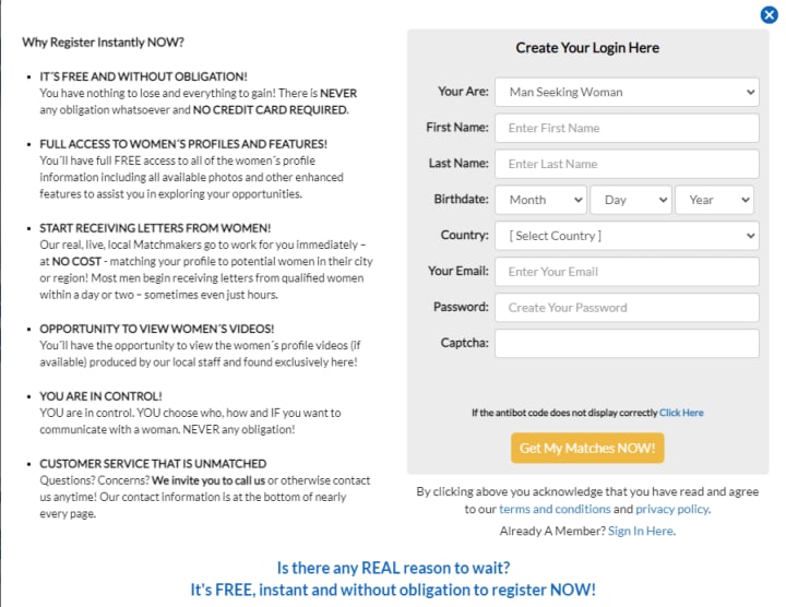 First, you have to register. Visit A-Foreign-Affair.com and create an account so you can view all the women’s profiles on the site. You won’t need a credit card to register and there are no hidden fees.