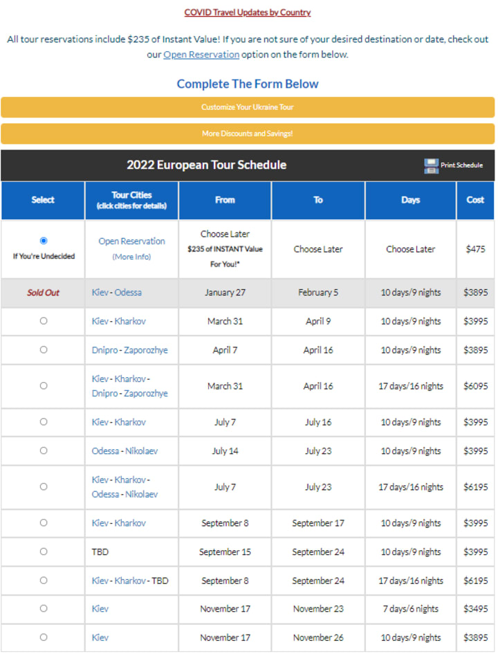 Second, you need to choose a date for the tour. The image below will show you the options for the countries and the dates. You can choose if you want to go for the European tours, the Asian tours, or the Latin tours. Below is the schedule for the next European tours for the year 2022.