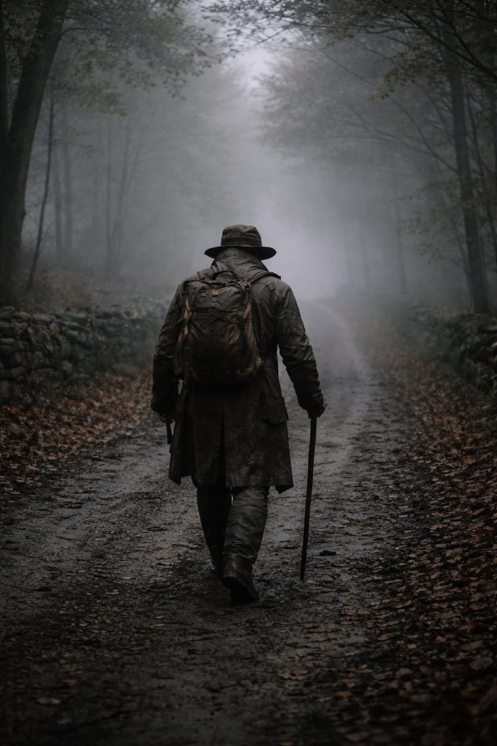 A man would appear... He walked along back roads and forest paths, dressed head to toe in heavy leather. His clothing was crudely stitched, layered, and reinforced, as though meant to endure years of punishment from weather and terrain. He carried no visible weapons. No luggage. No identifiable possessions beyond what he wore.