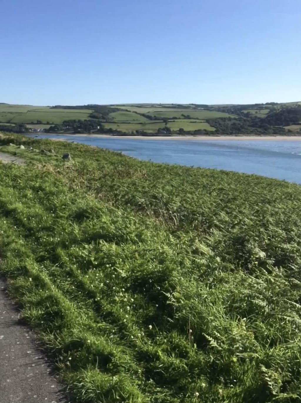 We found a boozer by the Quay and to be honest, right where I thought the Coastal Path began. So a few more beers were consumed in the afternoon heat. A quick look at the map and it was decided that there was probably a short cut through the town to join the path later on - So what do we do, we ask the fattest bloke in the beer garden with ten empty pint glasses in front of him, for advice on the quickest way to Gwbert (pronounced Goobert)...of course the fat bloke probably thought that the quickest way was in his Land Rover up the road. We foolishly took his advice and went up through the town and never even got on to the Coastal Path. We ended up walking to Gwbert on the pavement of a B Road. Divisions in the camp came quite swiftly - as bickering broke out regarding our lack of direction. It was horrible, a long upward slog in baking heat and not something I'd want to do again - so not an ideal start to this leg of the trip. The 4 of us went off at different paces - and again this wasnt good for morale. I think the walk was about 4 miles long and just when we thought we'd got there, there was another very long hill to climb... this would become a theme on this walk. Grant had gone on ahead and when Ray, Ian and myself got to the top of that horrible hill we stopped off at a viewing point, which somehow made that tortuous walk worth it. Fantastic views of the Cardigan Estuary looking over the bay to St. Dogmaels. It was about 6.30pm by this time and we spoke to a few locals who were up at the vantage point, they told us finding a spot to pitch the tents would be easy later on, again I'm guessing that the locals hadnt even done this walk. Then the phone goes and Grant tells us he's found us another watering hole overlooking the sea - it was a place called The Cliff Hotel Spa - so onwards we went, at least this part was down hill. I have to say that The Cliff Hotel Spa was really something else - someone has thrown a lot of money at this place and I was actually surprised that they even let us in - but of course, everywhere's been closed over the last few months and what this place needed was customers. It's a fantastic place with a great balcony to view the sea.