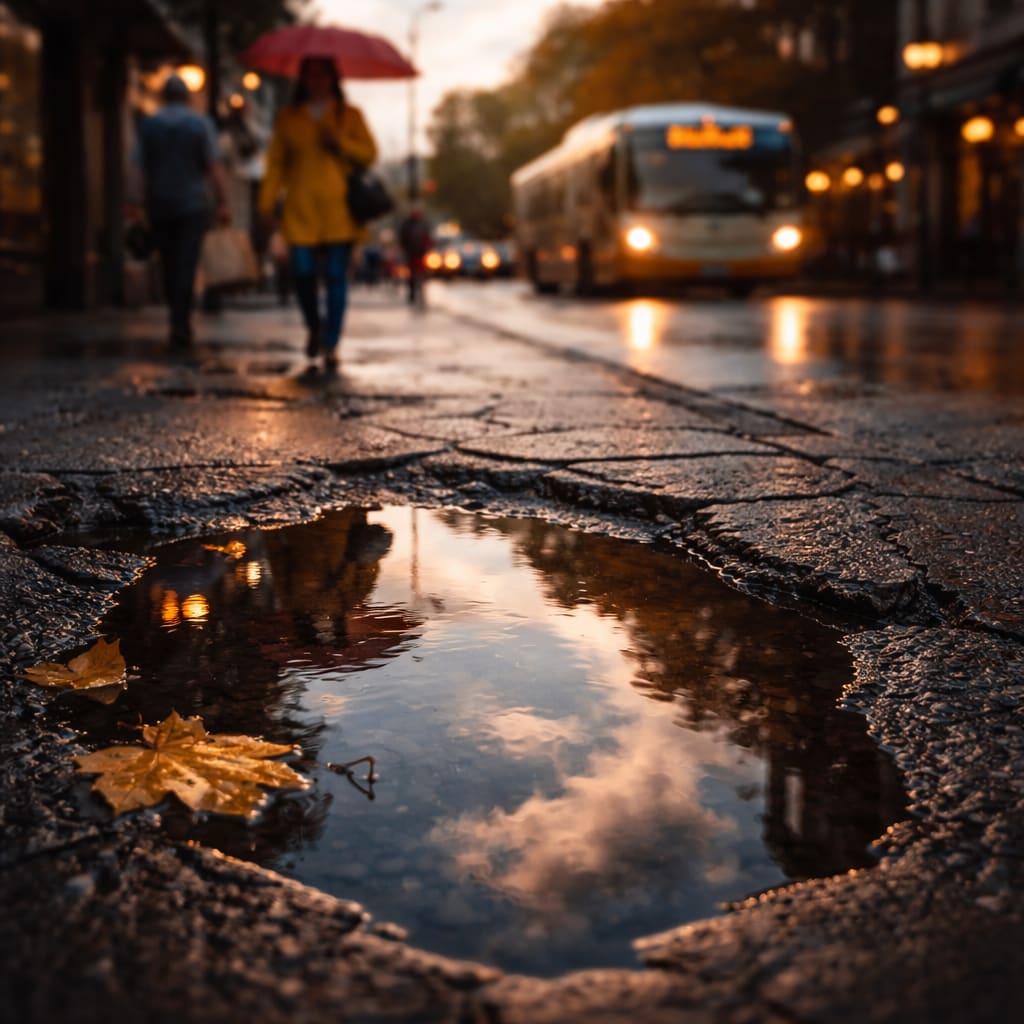 It was nothing, technically. A puddle. A crack. But the reflection made it feel like a portal the street hadn’t meant to leave open.