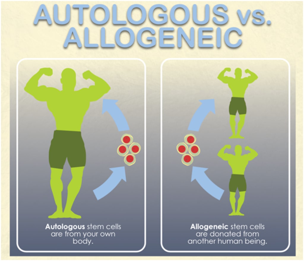 Autologous cell therapy uses a patient's own cells, which are extracted, cultured and then re-introduced into the patient. Allogeneic cell therapy uses donor cells which are carefully matched to the patient. Because the cells come from a donor instead of the patient, there is a risk of rejection, so patients typically require immunosuppressant drugs.