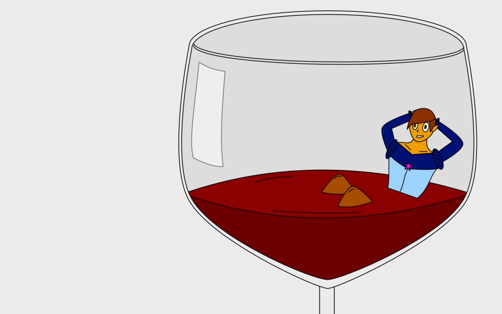 I went to take a sip of my Merlot when it happened, I saw him. A chillingly loud screech escaped my mouth as I struggled to believe my eyes. Sitting-no RELAXING-in my wine was a small man the size of my middle finger. His hair was a dark brown and his clothing was completely soaked through and stained red. He looked up at me and smiled a knowing smile and shrugged. The smile said, I know this is strange but what can I do?