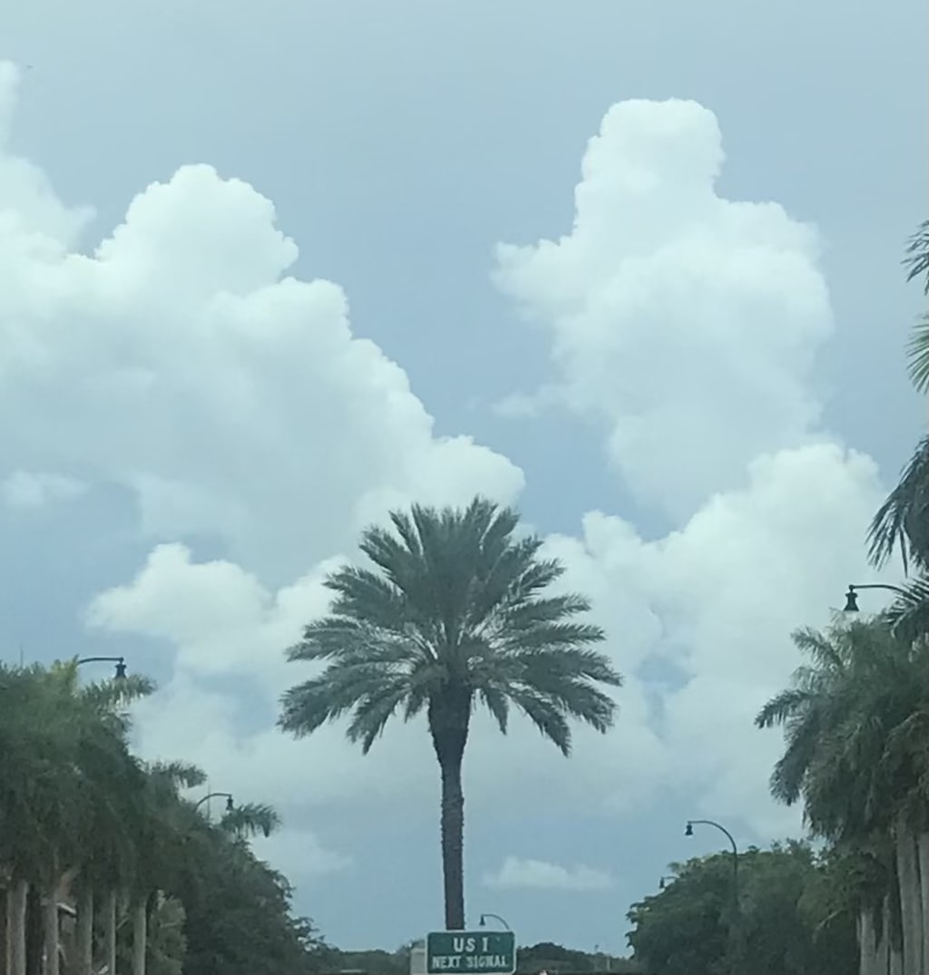 After class I was going out the door when a sudden gust of wind hit me full in the face. Then the rain drops began to fall and suddenly the teacher appeared beside me with his umbrella holding it over my head.