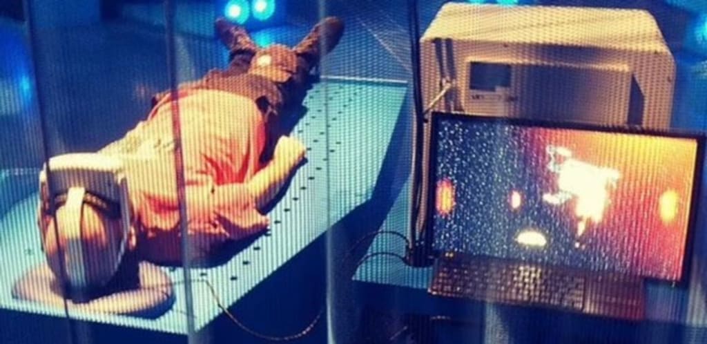 The hospital bed itself vibrates to simulate medical equipment, while the VR headset displays scenes from a hospital room. Doctors are seen frantically trying to resuscitate the participant, all to no avail. Slowly, everything fades. The beeping slows. And eventually, silence.