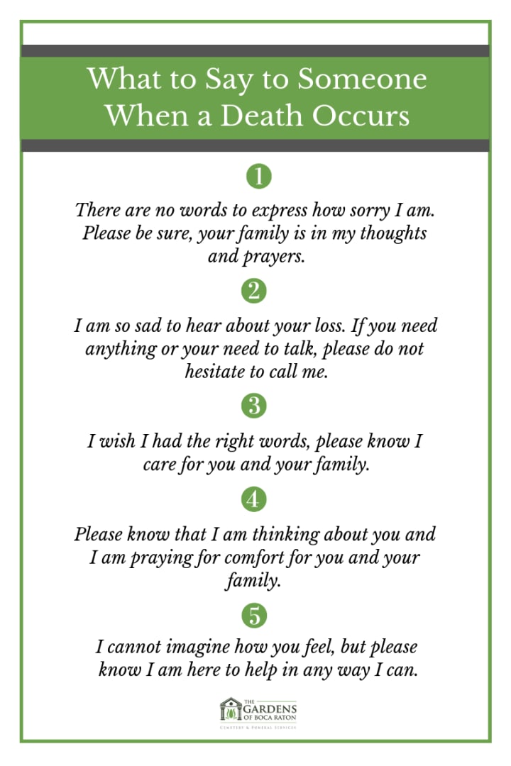 WHAT TO SAY TO SOMEONE WHEN A DEATH OCCURS