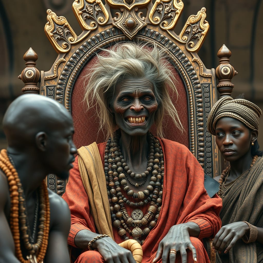 If not for their king, who was rough and very mean, the tribe might have become extinct. He had become blind several years ago. He was preoccupied with the size of his feet, a whopping size 26, when he walked into a tree branch. The branches poked into his eyes and made him blind.