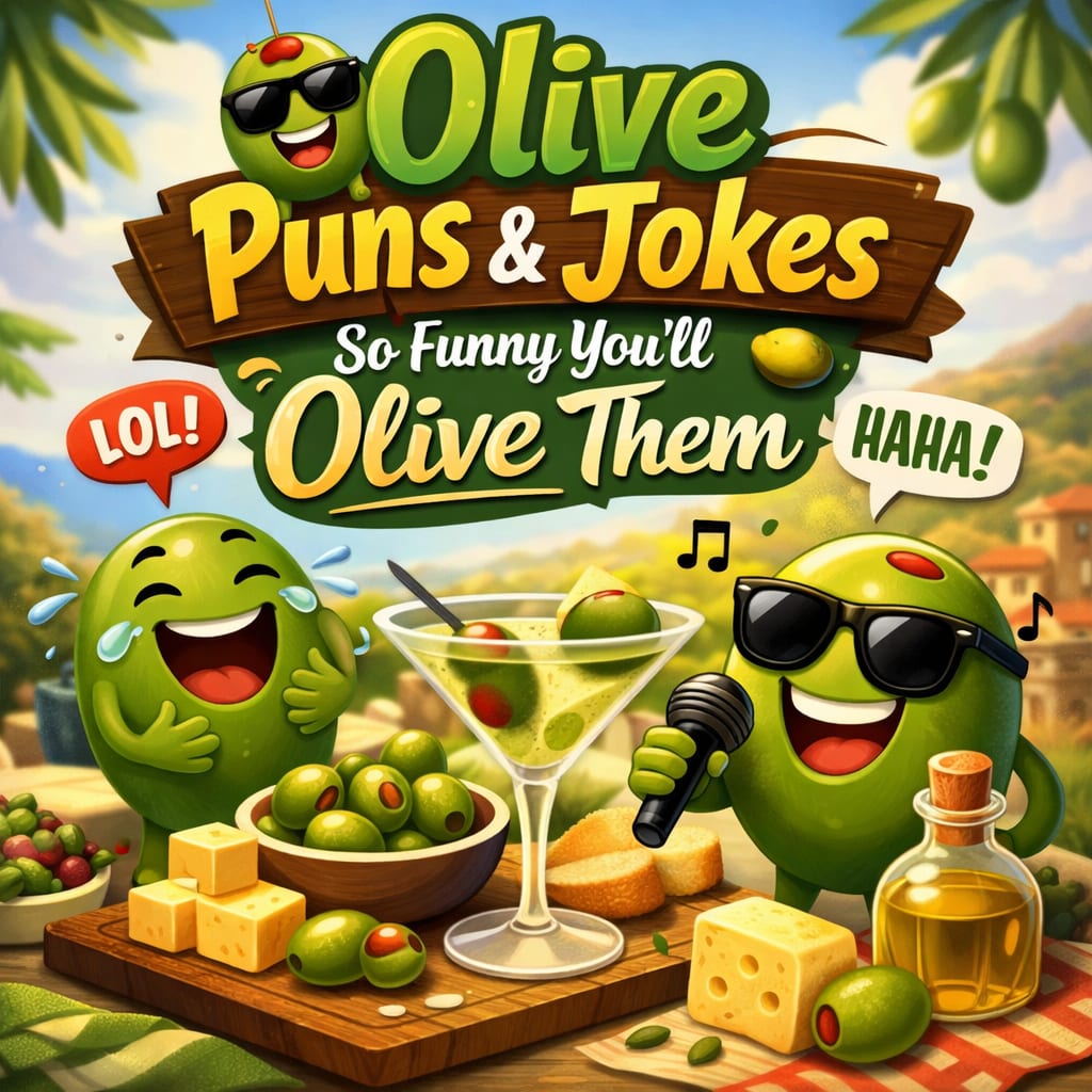 Olive Puns & Jokes So Funny You’ll Olive Them is your go-to collection for laughter with a tasty twist. Packed with clever olive puns, lighthearted jokes, and clean wordplay, this fun-filled list is perfect for food lovers, pun fans, and anyone who enjoys a good laugh. Whether you’re looking to brighten your day, share a joke with friends, or add some humor to your content, these olive jokes are sure to deliver. From pit-perfect punchlines to brine-worthy humor, get ready to olive every moment of this hilarious collection.