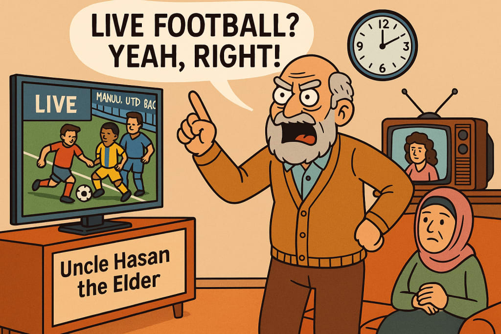 So when the clock struck 10, one of my cousins casually announced, “Alright! Time to switch to Channel 3 for the match.” Uncle Hasan, without so much as looking up from his seat, raised the remote like it was a royal scepter and declared, “No switching. My show’s starting.”