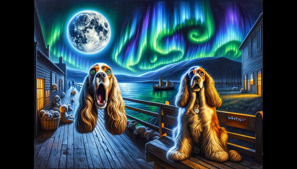 Preamble: Honestly, Dall-E/ChatGPT produced the above, following this prompt "can you create an image similar to the painting The Scream with a cocker spaniel, the moon, a big sign in the back that says clearly "What If?" and a person that looks like Donald Trump getting punched in the belly. Make it 1280 x 720 please"