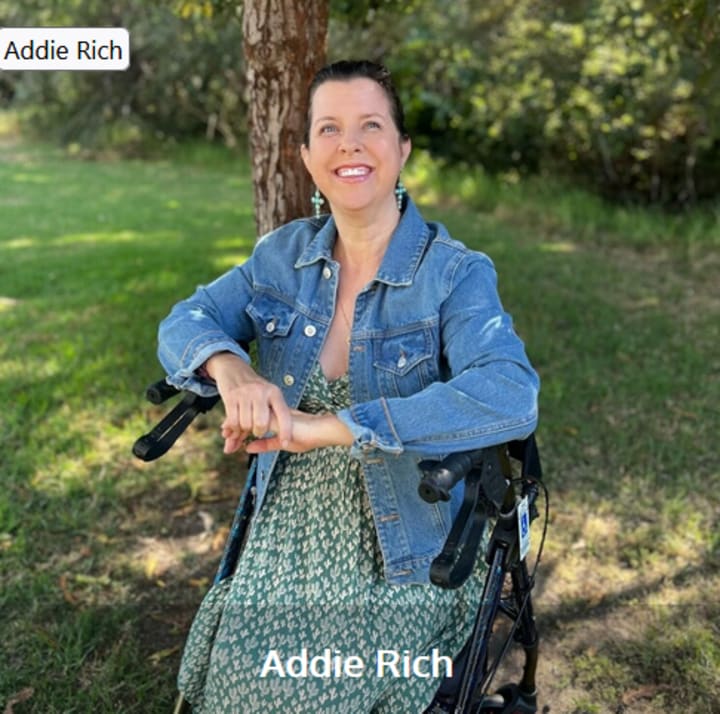 Born in 1979, several months premature and diagnosed with Cerebral Palsy, Addie Rich’s journey has been one of determination and joy from the very beginning.