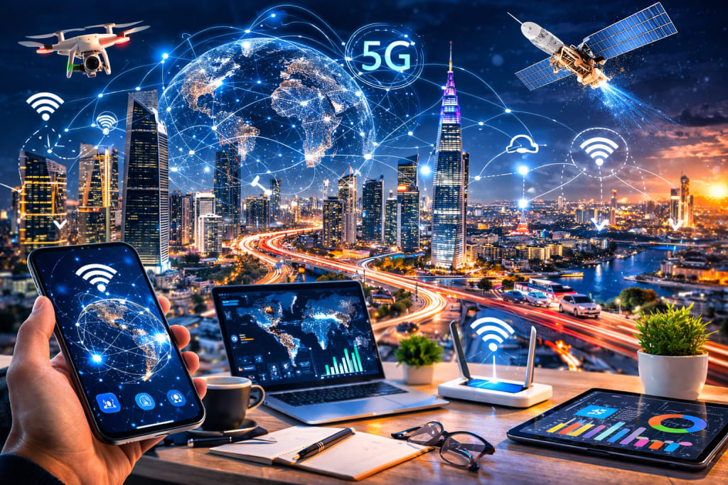Satellite networks, cellular infrastructure, Wi-Fi systems, and emerging communication standards could operate as unified connectivity layers. Instead of switching between networks, devices will automatically select the best available connection in real time.