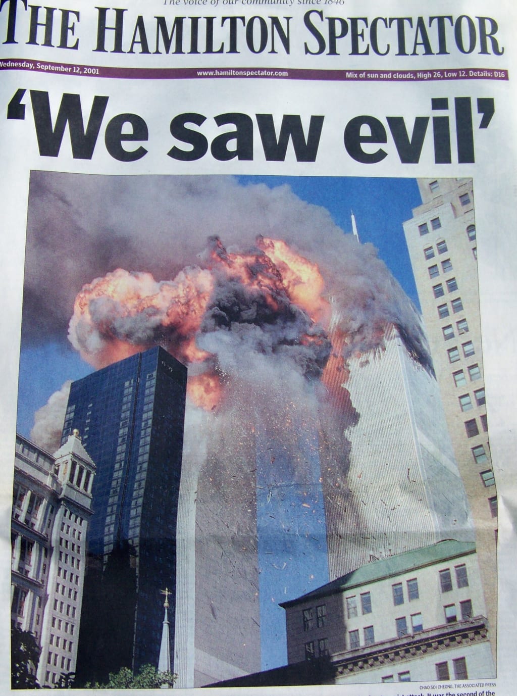 My wife & I were out for our morning walk when a neighbor told us what had happened with the first plane. We saw the second plane hit.