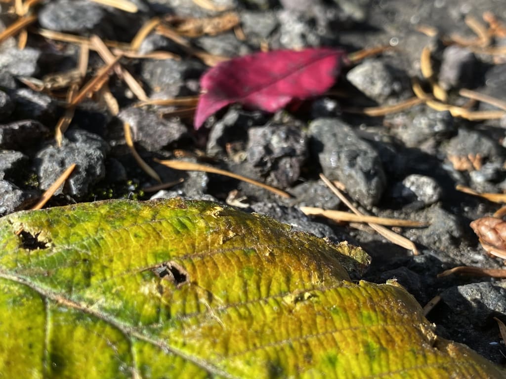 The fact is, I have grossed less than $4 selling postcards after investing well over $100 in printing and many hours to boot, and it’s not because I’m bad at photography. I’m really fairly good, especially for someone whose only camera is a phone. Trouble is, like this almost magenta leaf I just found, you need to be obviously outstanding to get noticed in the artistic world. I’m just plain old good, and good and outstanding are not the same thing.