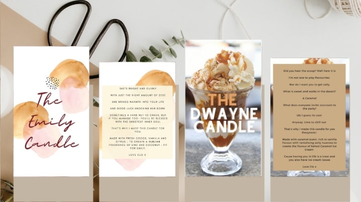 I decided each candle; based on the scent, occasion, and recipient – would tell a story.
