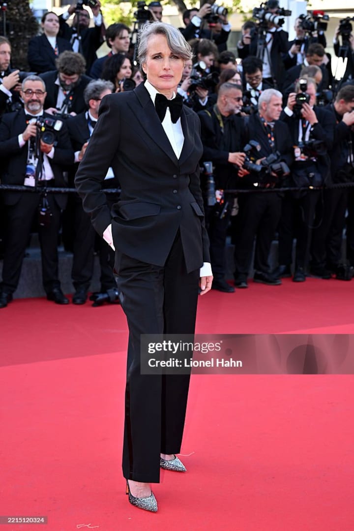 Andie Macdowell is an veteran actress and still stunning with various fascinating appearance. She was shining in a lingerie-inspired sleep silk gown at the screening of ‘Dossier 137’. The gown desginer is Alberta Ferrettti.