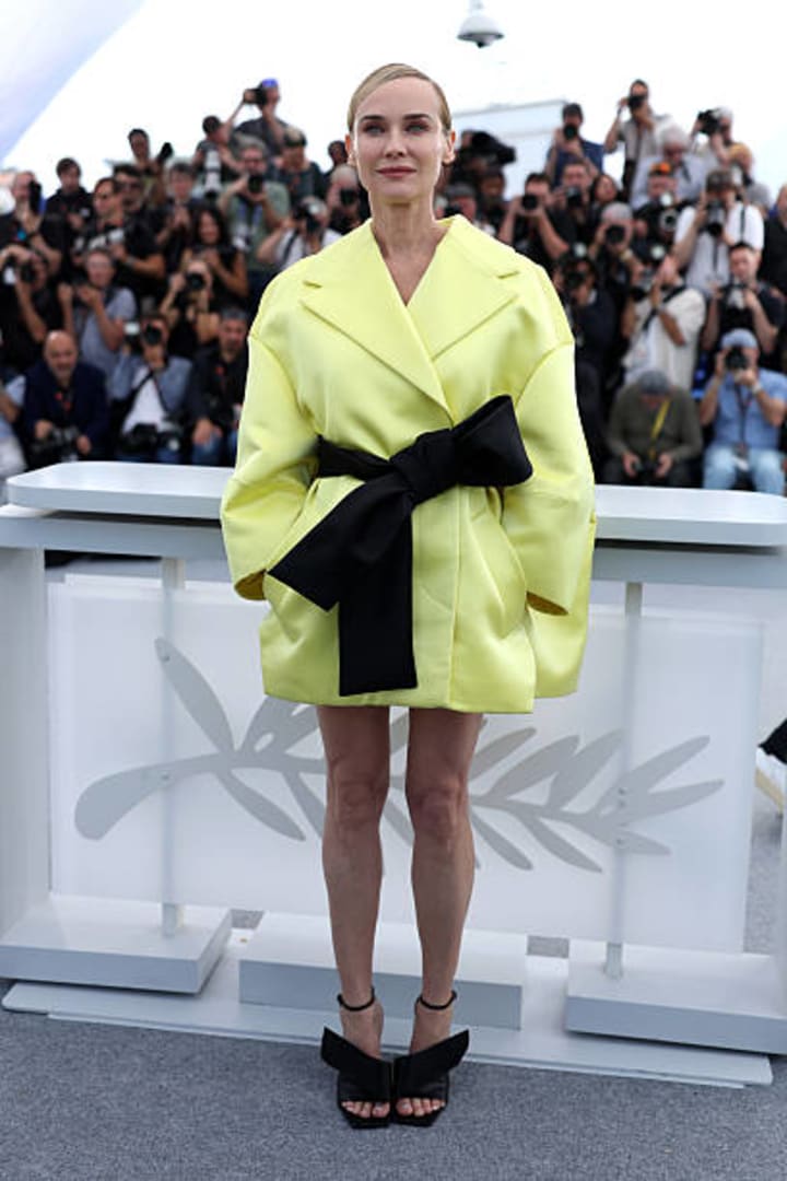 Juliette Binoche- the French icon, has created the butter yellow trend. She wore a sunny Jacquemous with a hooded Dior design.