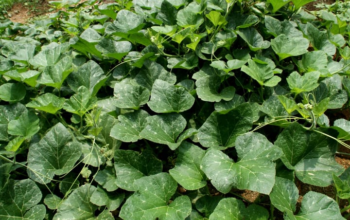 The opulent pumpkin vines and the taro patch served as healthy vegetables.