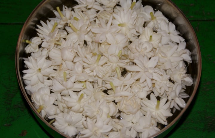 I would pick the Arabian jasmines dropped under the bush and put in a bowl of water. It was natural aromatherapy.
